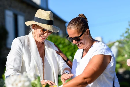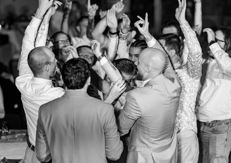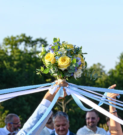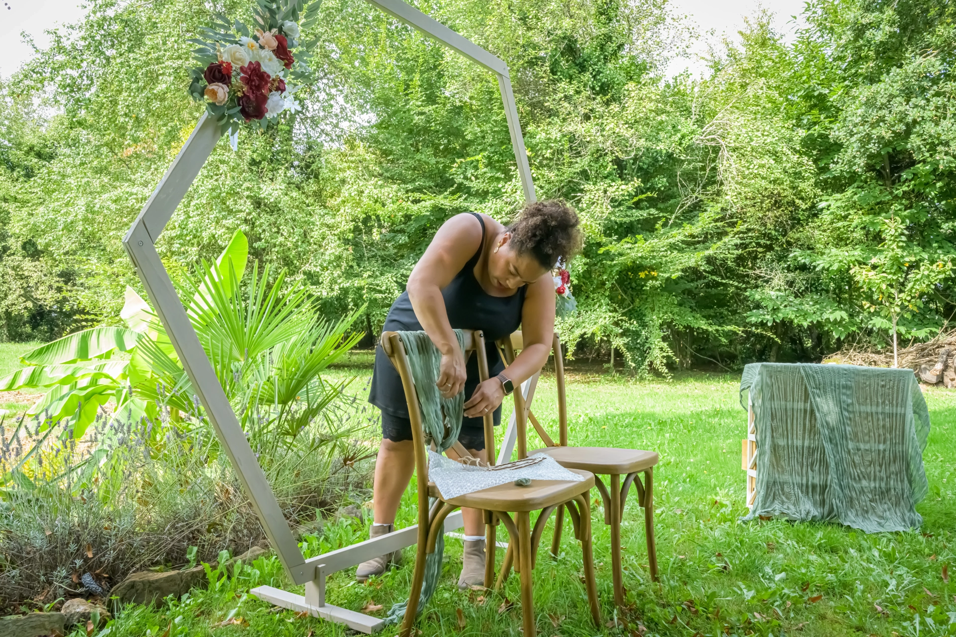 C’est Marc, mon mari et premier assistant, qui shoote tous mes événements sous sa casquette de photographe pro (Markowz Pictures). Les photos que vous voyez sur mon site et mes réseaux, c’est lui. Ça me permet d’avoir un regard cohérent sur mon travail et de vous montrer la vraie atmosphère de mes mariages.
