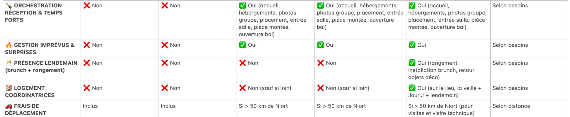 ✅ Coordination partielle (juste la cérémonie, ou juste le cocktail...)